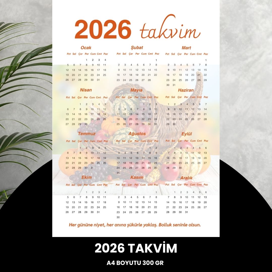 Ürün Açıklaması: 2026 yılınızı en sade ve şık haliyle planlayın. Yüksek gramajlı 300 gr. mat kuşe kağıt üzerine basılan bu takvim, hem profesyonel ofis ortamlarına hem de ev dekorasyonunuza mükemmel uyum sağlar. Kağıt Kalitesi: 300 gr. kalın yapısı sayesinde sayfalarda kıvrılma yapmaz, tok bir duruş sergiler. Yüzey Özelliği: Üzerine not alınabilir mat yüzey; kurşun, tükenmez veya jel kalemlerle dağılma yapmadan yazım imkanı sunar. Boyut: Standart A4 (21 x 29,7 cm) boyutuyla her alana uygun. Kullanım: İster duvara asın, ister masanızda altlık olarak kullanın. Minimalist çizgileriyle göz yormaz, odaklanmanızı sağlar.