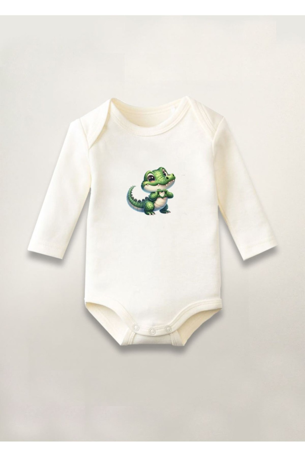 Timsah Baskılı Pamuklu Uzun Kollu Çıtçıtlı Bebek Body Zıbın Atlet Tulum