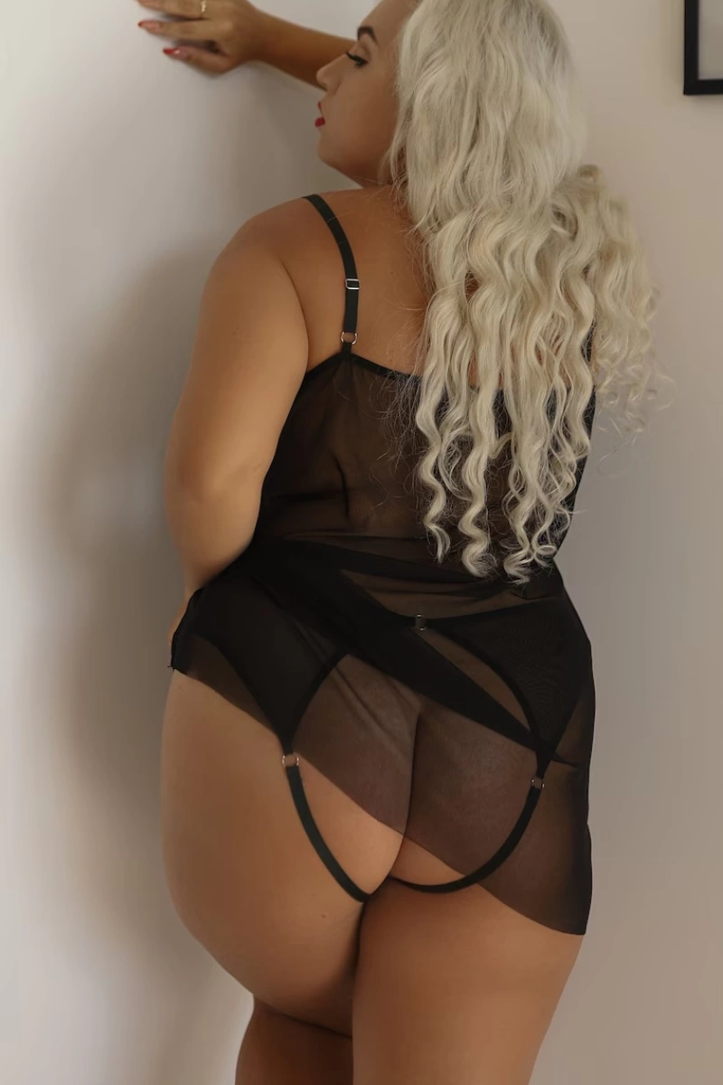 Transparan Siyah Büyük Beden Kısa Tül Gecelik TM1304