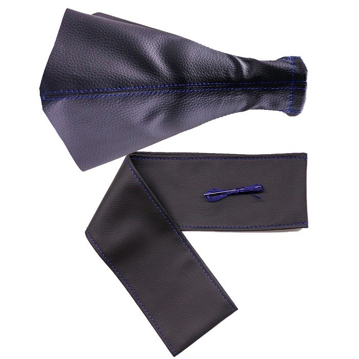 Tüm Araçlara Uyumlu Direksiyon Kılıfı Ve Vites Körüğü Siyah Deri Mavi Nakışlı