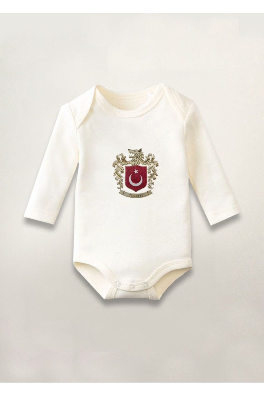 Türk Bozkurt Baskılı Pamuklu Uzun Kollu Çıtçıtlı Bebek Body Zıbın Atlet Tulum