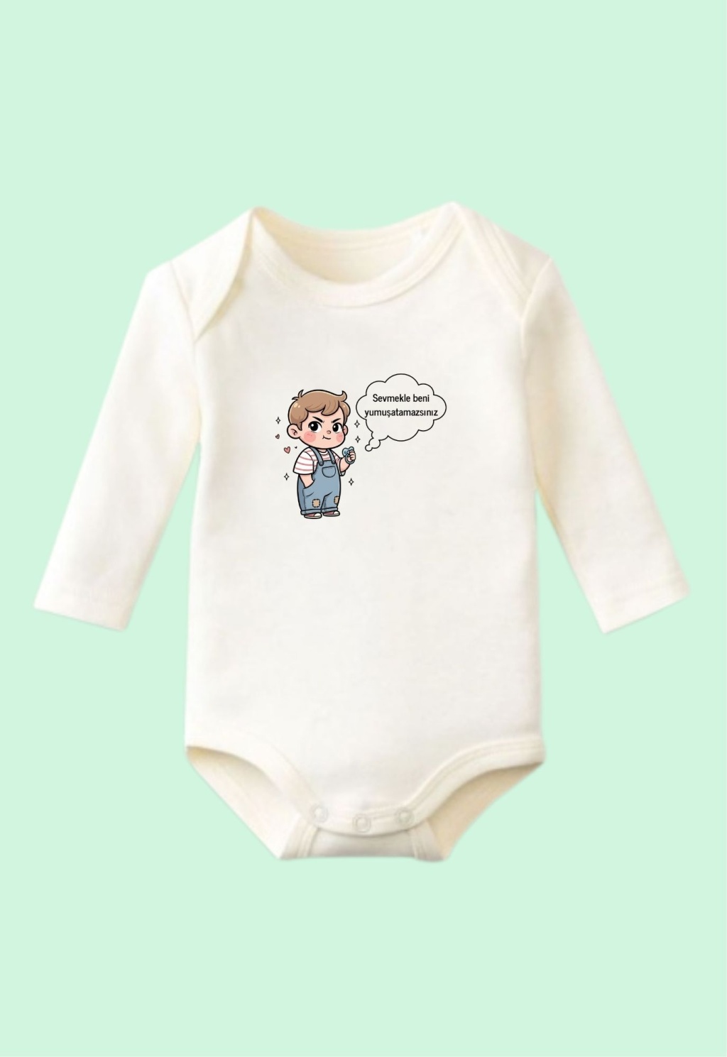 Unisex Bebek Beyaz Body Sert Çocuk Tasarımlı Uzun Kollu Body Pamuklu Beyaz